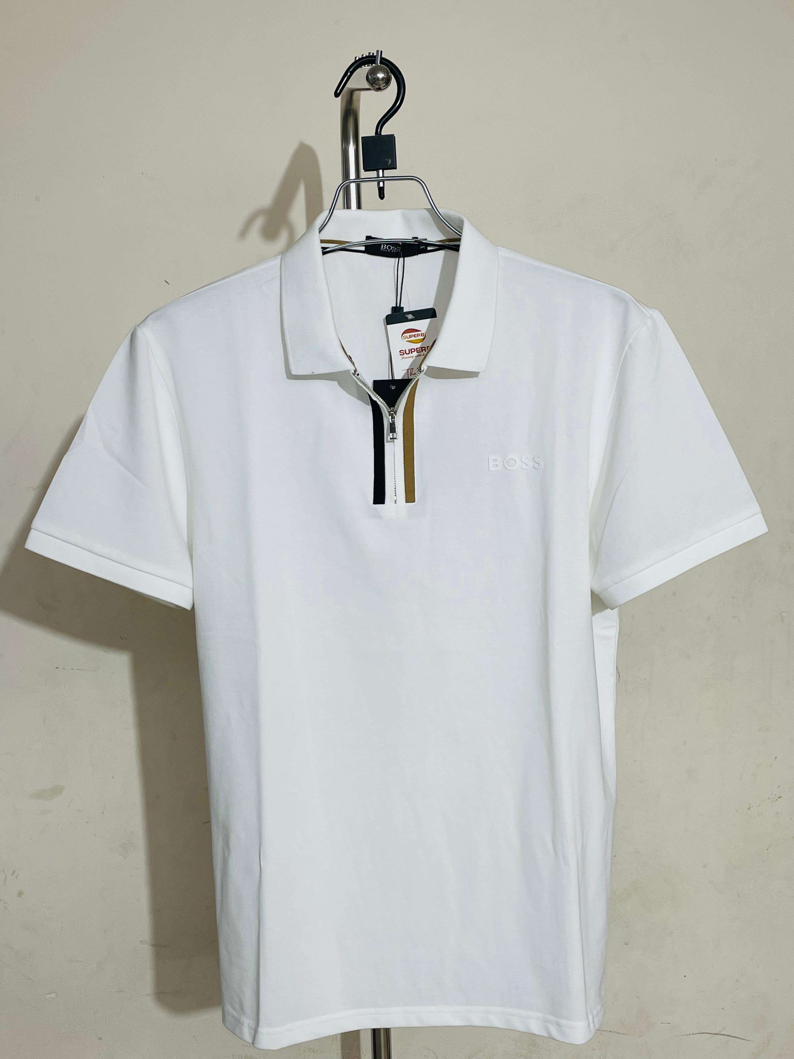 Stay ahead in style with Boss's premium half-zipper polo shirts, crafted from a soft stretch blend that delivers superior comfort, flexibility, and a sharp, modern look. Available in White and Navy Blue.