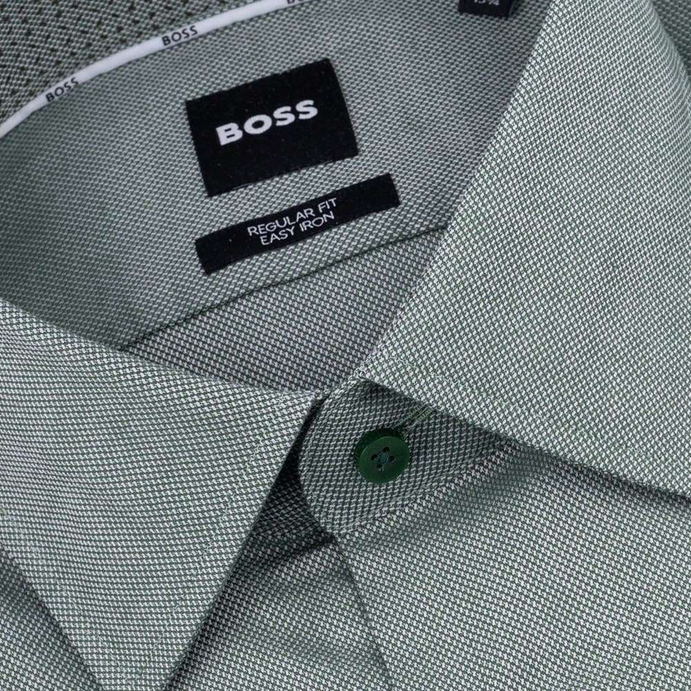 Men's BOSS Mint Green regular fit shirt with a Kent collar, crafted for easy ironing.
