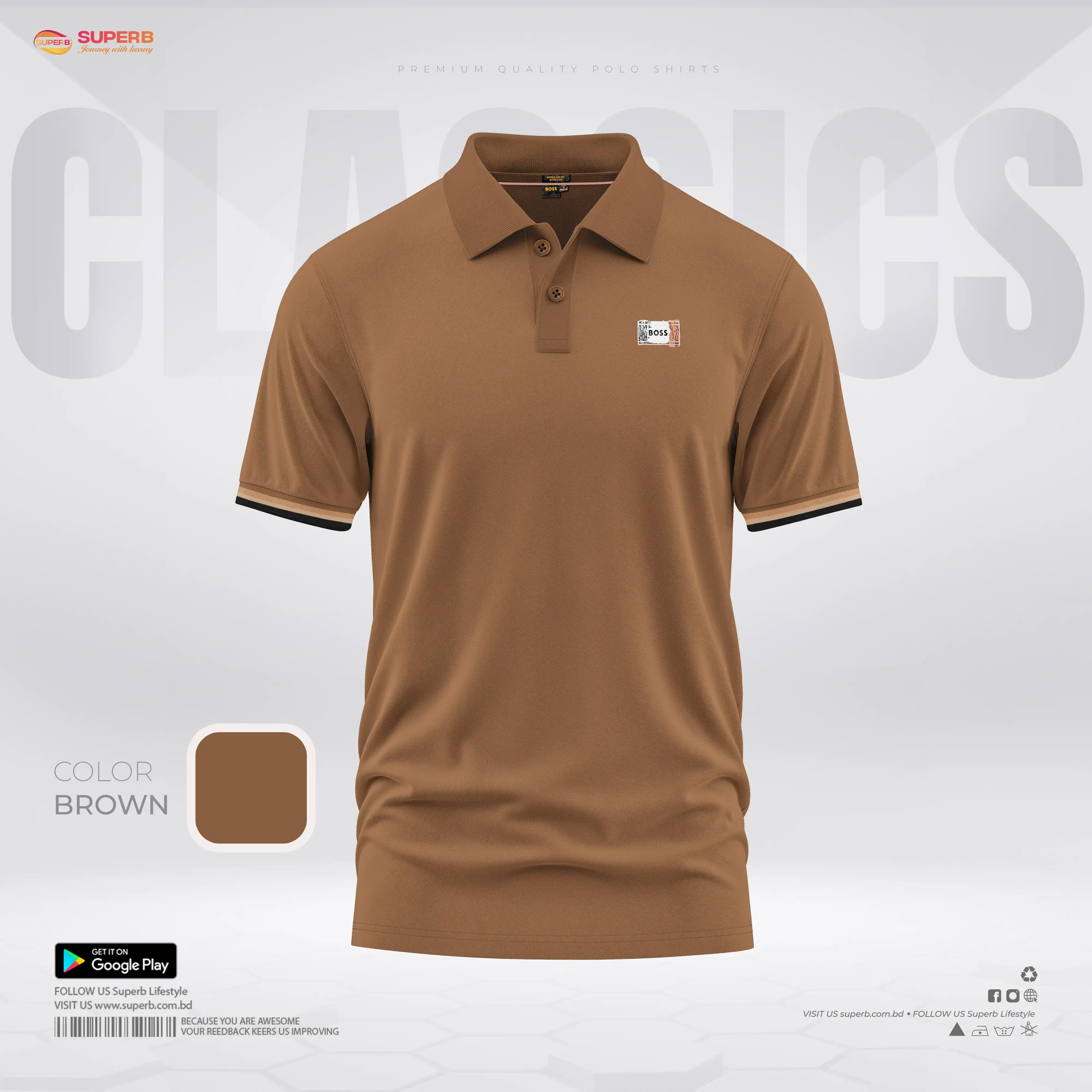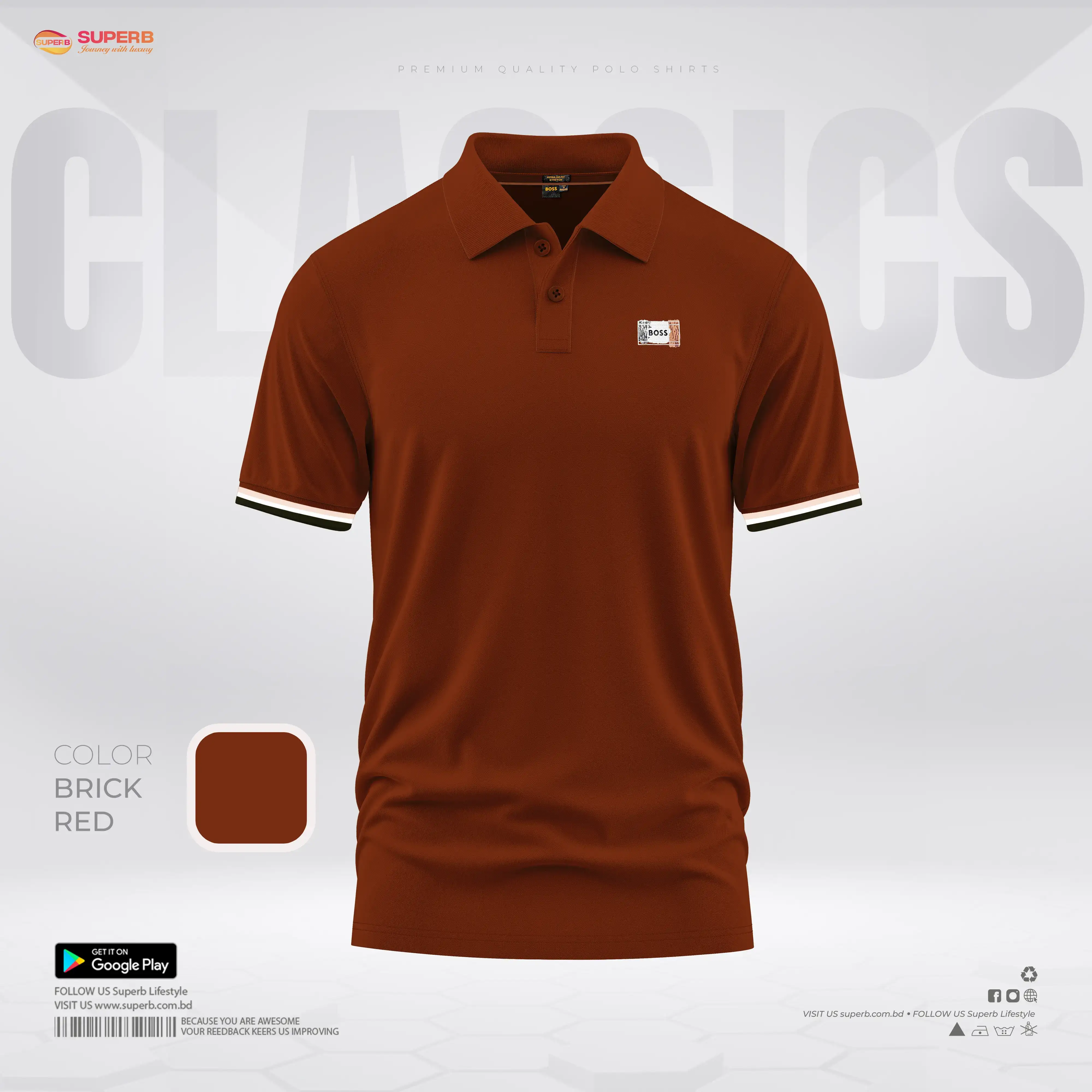Discover the Boss polo shirt with contrasting sleeve cuffs. Made from soft knit fabric, featuring a classic collar and subtle logo—available in Brick Red, Black, Brown, and White.