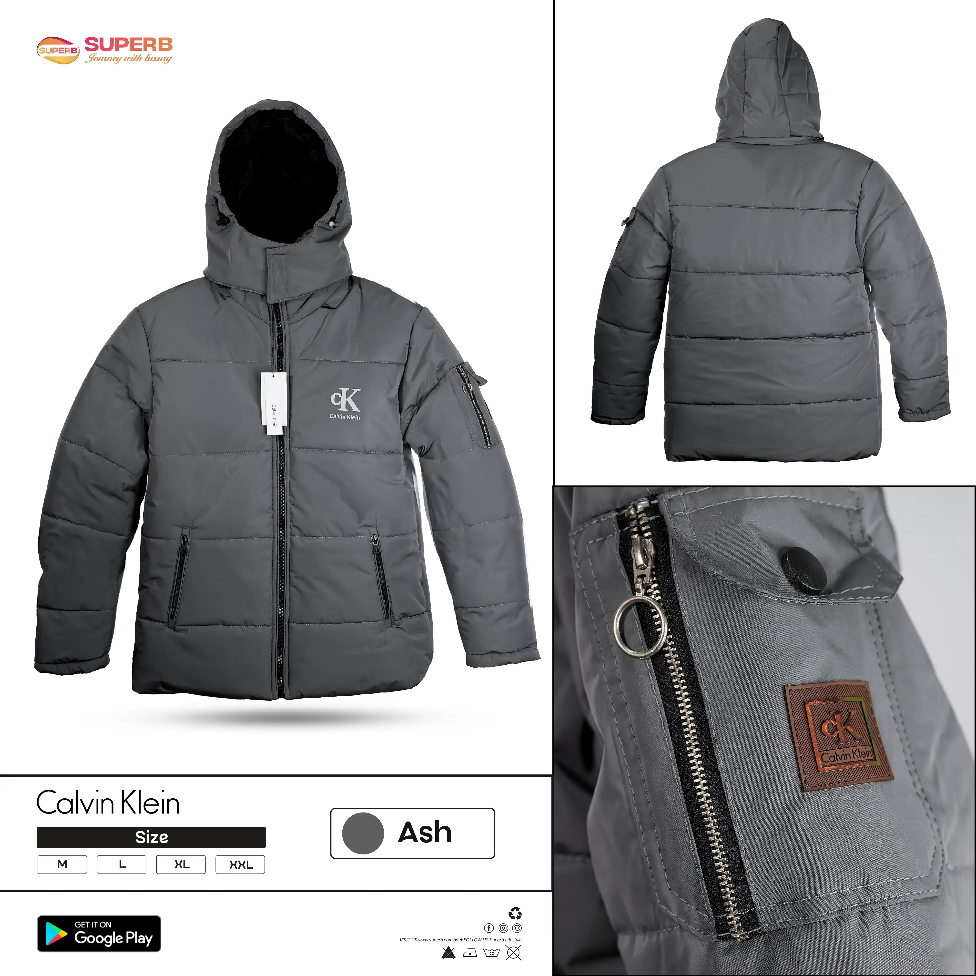 Shop the Calvin Klein men’s puffer jacket rated to -40°C. Features a quilted design, attached hood, full zipper, and iconic CK branding. Available in Black, Navy, Ash & Olive.