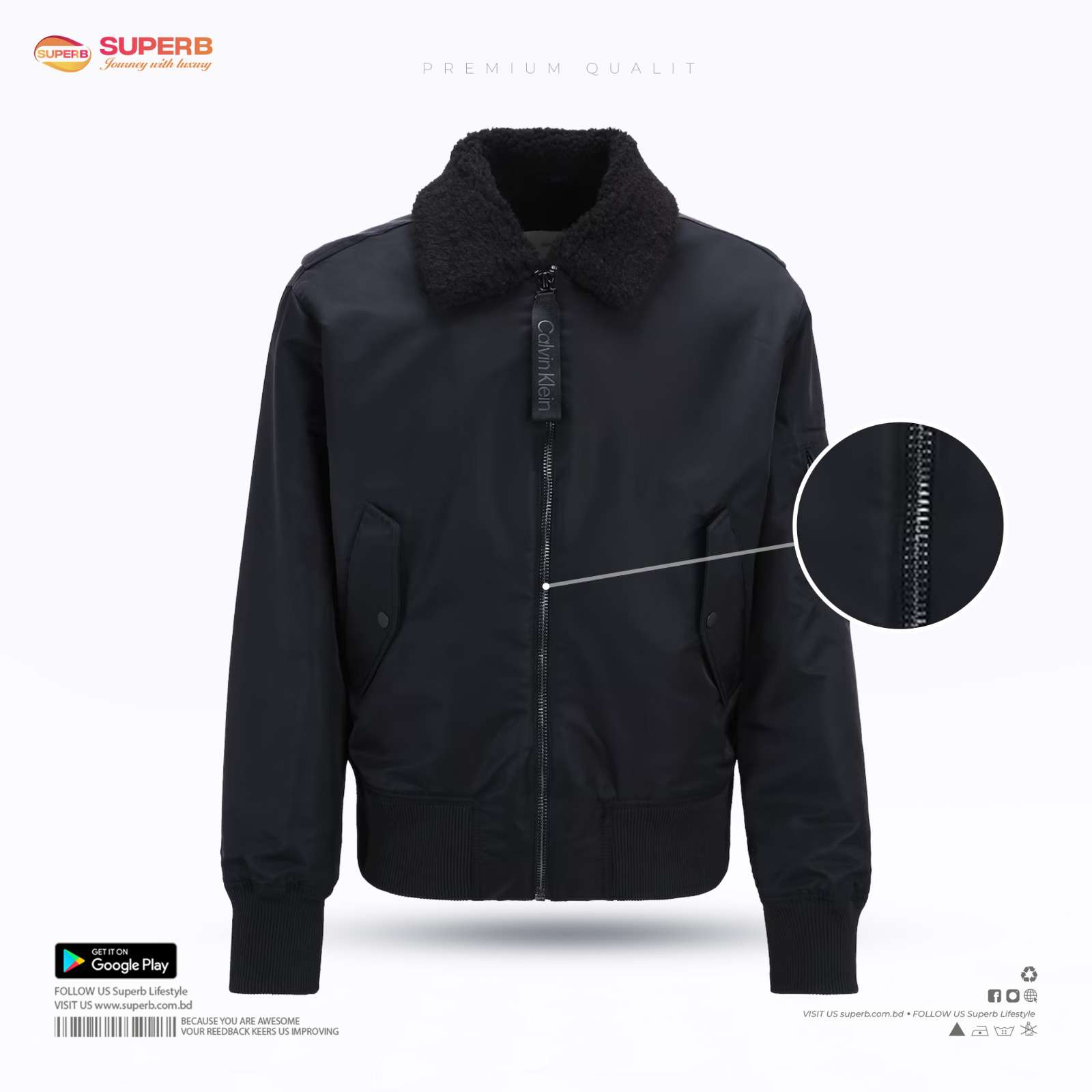 Calvin Klein Premium Bomber Jacket with Sherpa Collar || Superb