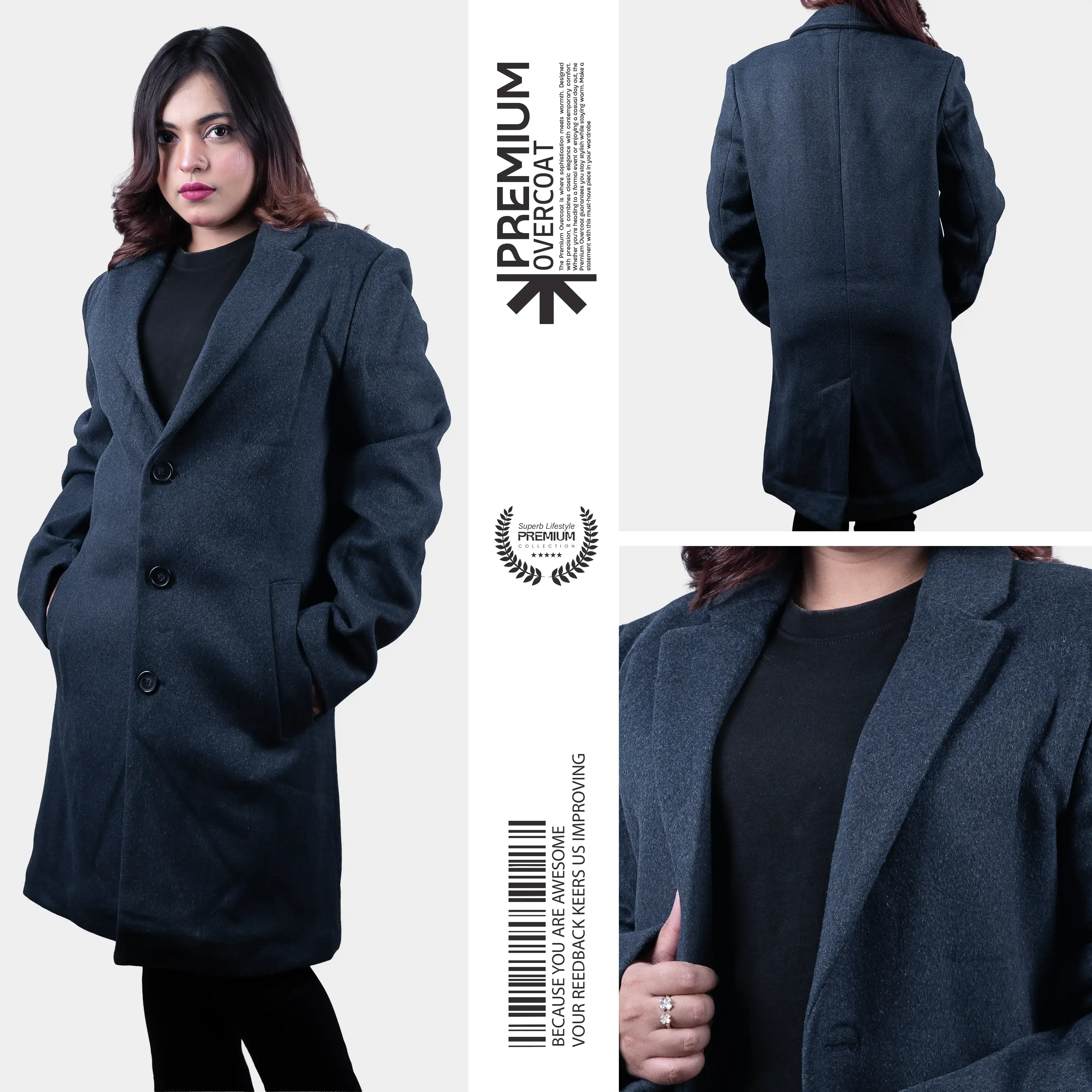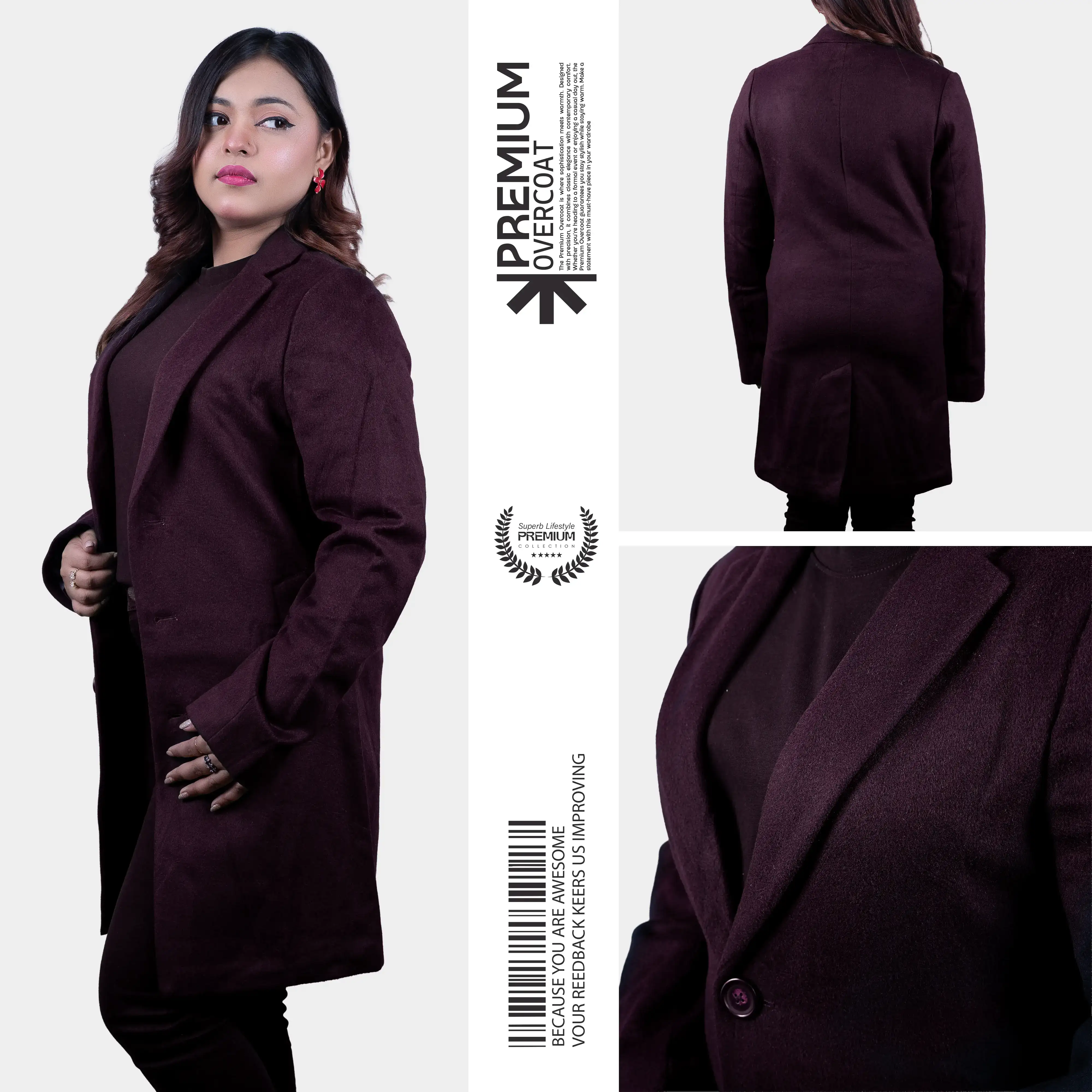 Stay warm in style with the Defacto Long Overcoat, featuring a regular fit, notched lapel, and smooth wool-blend-like fabric. Available in red purple, navy Blue, and black.