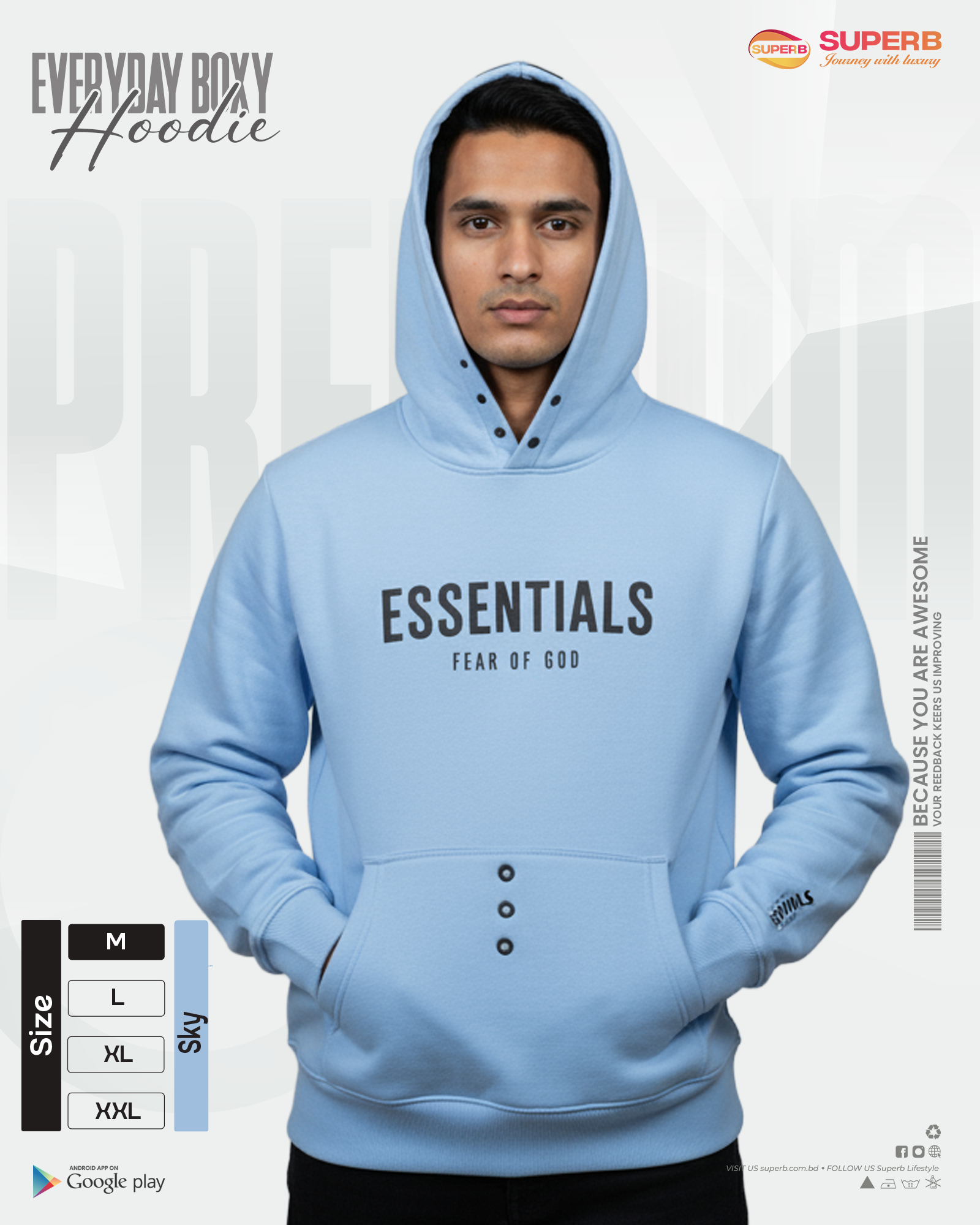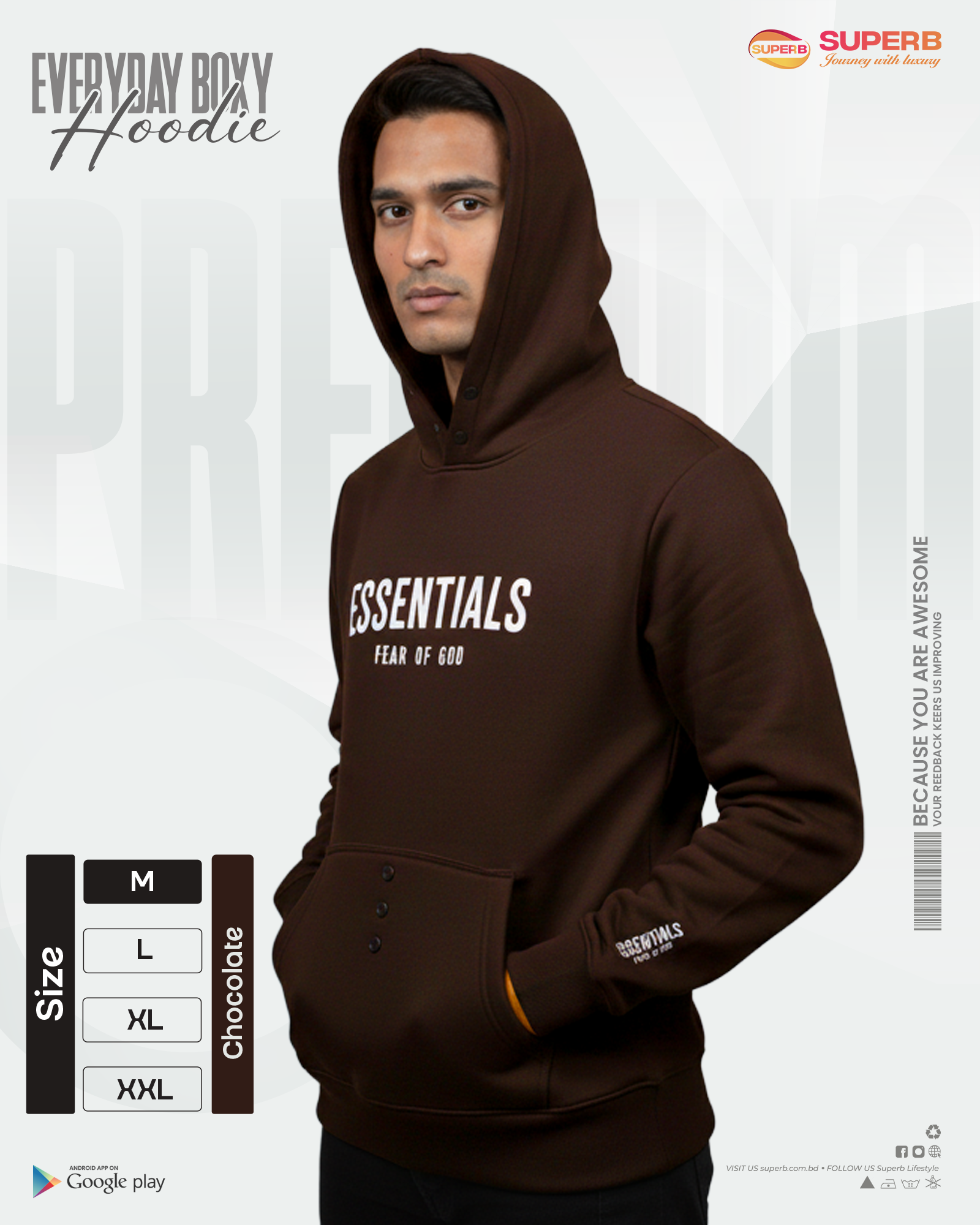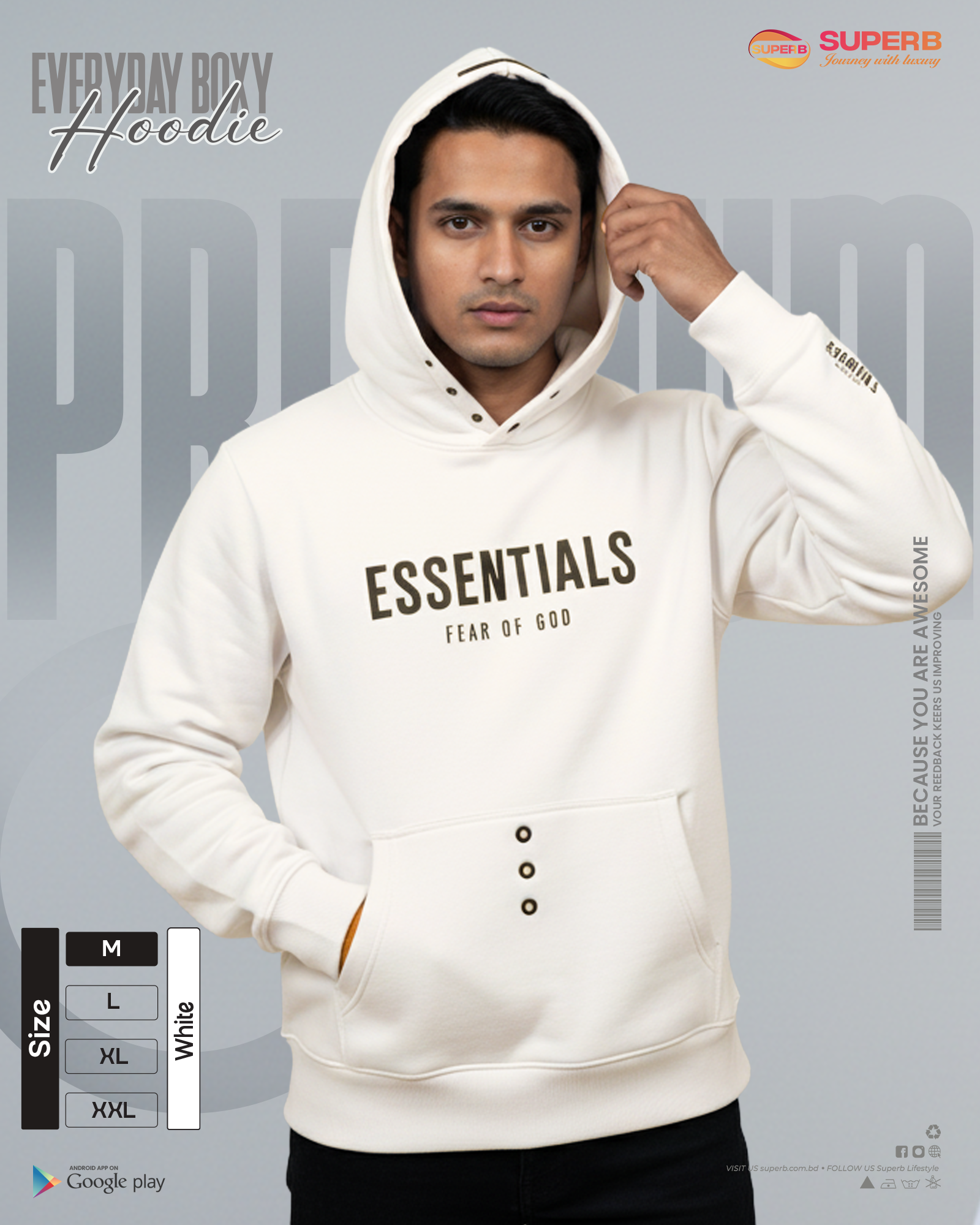 Upgrade your everyday comfort with the Essentials Premium Hoodie — crafted from ultra-soft inner brusho fabric and heavyweight 350+ GSM cotton. This unisex hoodie combines warmth, durability, and minimal streetwear design for men and women who value both comfort and style.