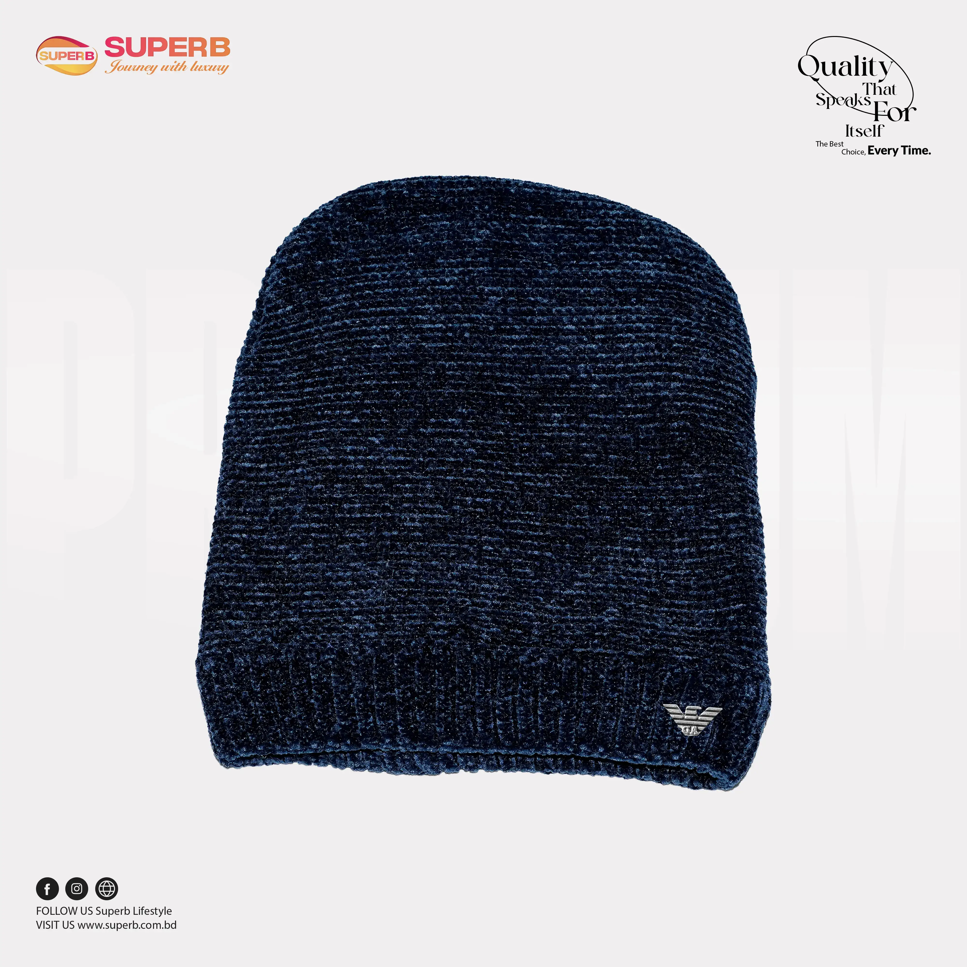 Giorgio Armani Unisex Ribbed Beanie | Wool Cashmere Winter Hat with Eagle Logo || Superb