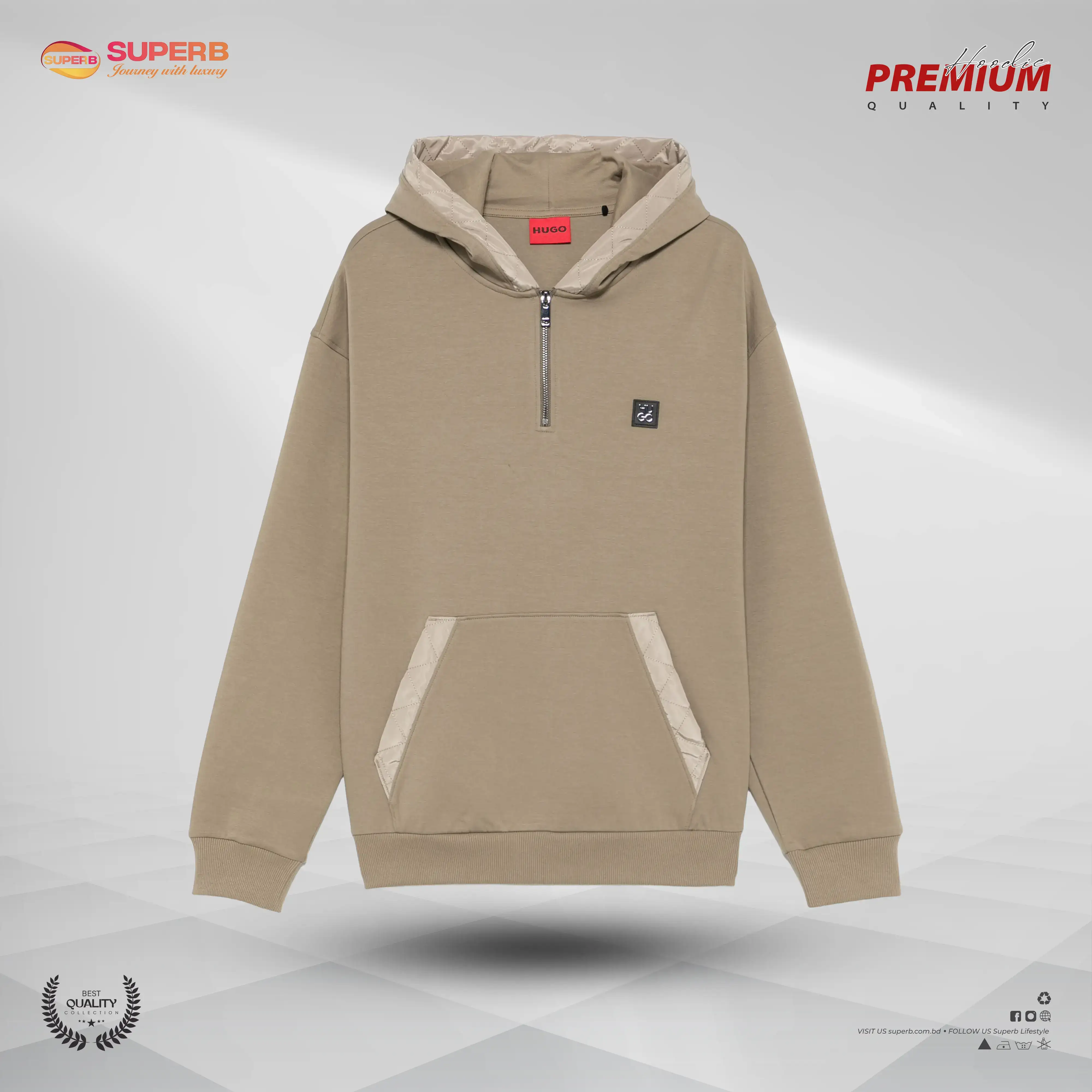 Stay stylish and comfortable with this HUGO BOSS half-zip hoodie in a sleek medium brown tone. Designed with quilted trim details, this premium piece blends fashion and function with a cotton-rich fabric and sporty elegance.