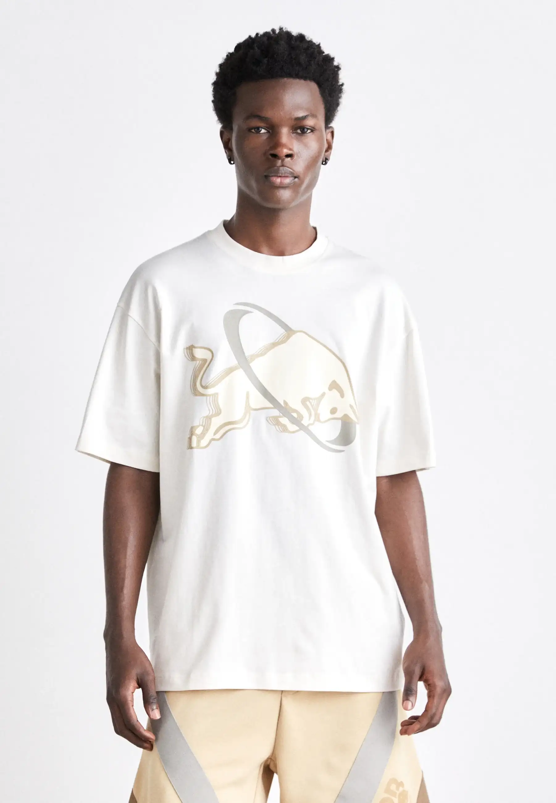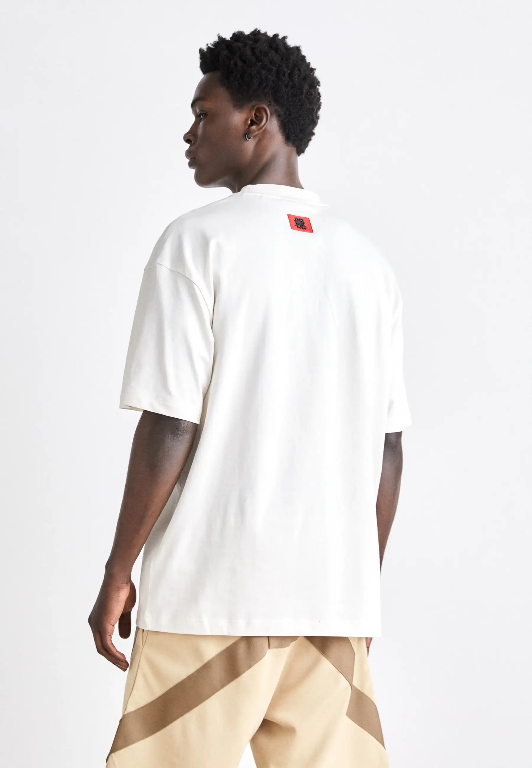 HUGO Danirick RB T-Shirt in Open White, a bold collaboration piece with Visa Cash App Racing Bulls, featuring printed branding and made from 100% cotton.
