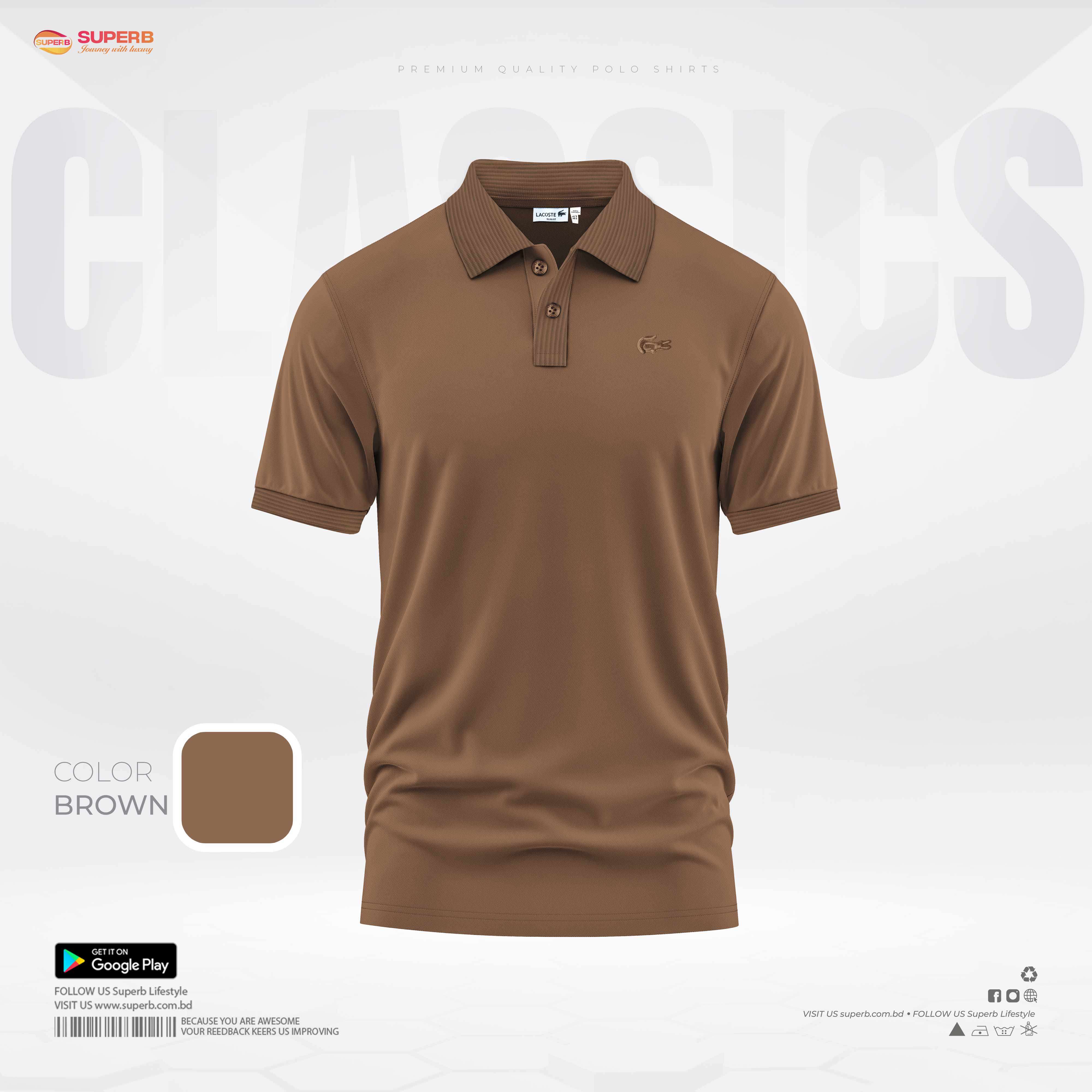 Timeless Lacoste polo shirt in comfortable cotton pique. Available in Amber Orange, White, Brown, Black, and Bottle Green.