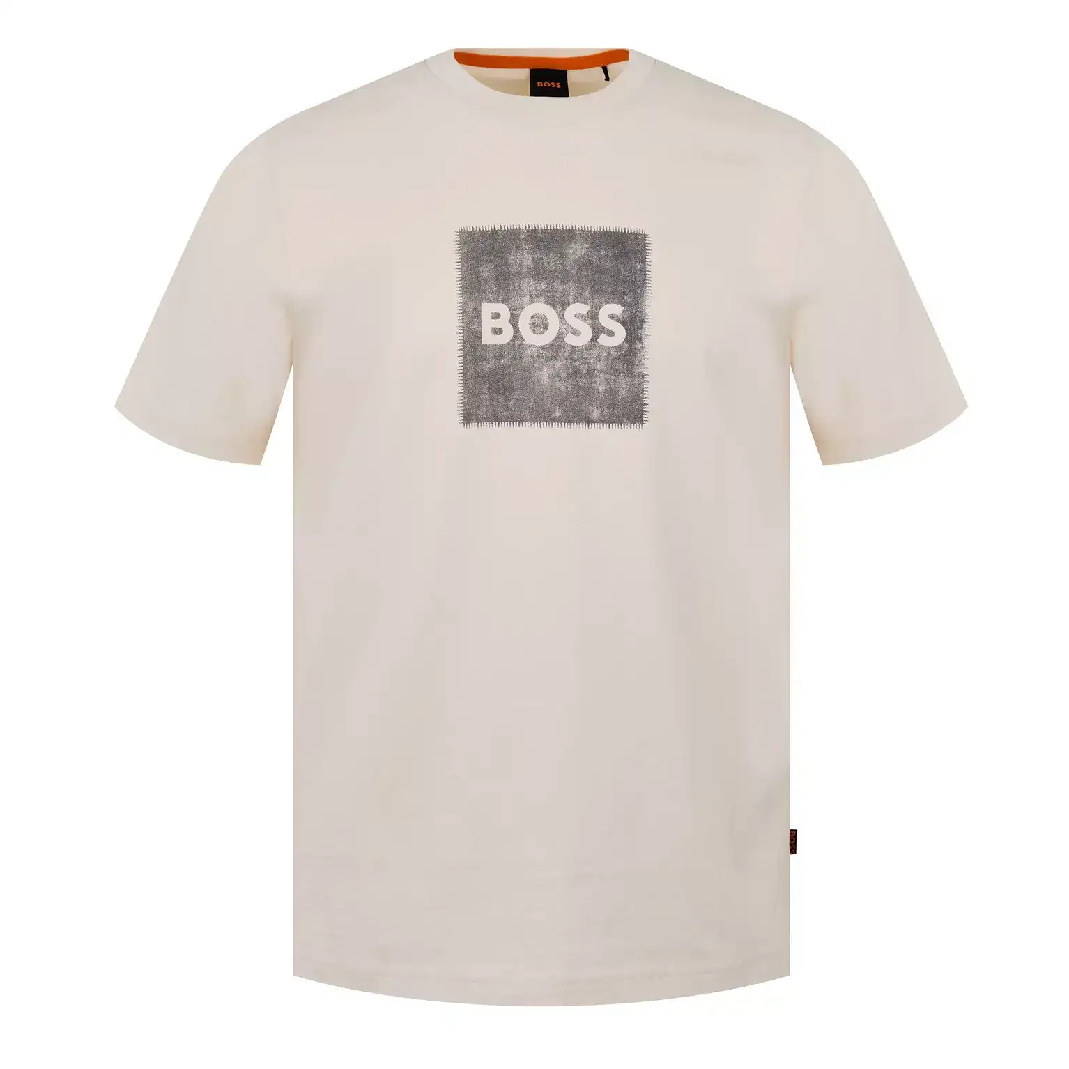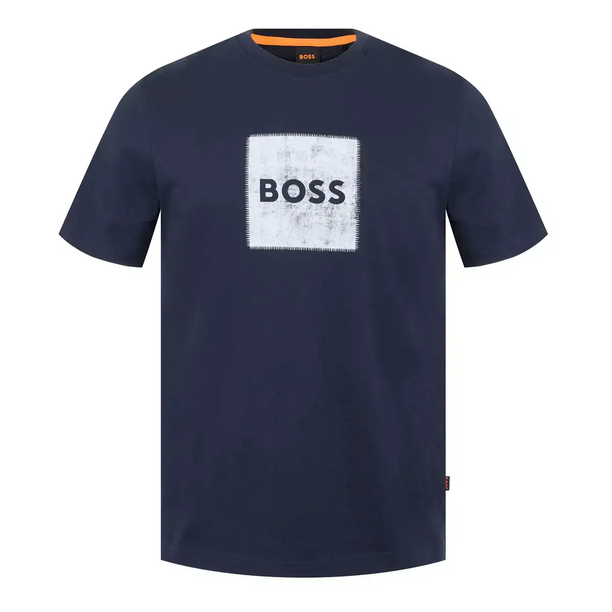 Authentic BOSS men's t-shirt in soft 100% cotton with a distinctive logo graphic. Available in Navy Blue, Black, and Off White.