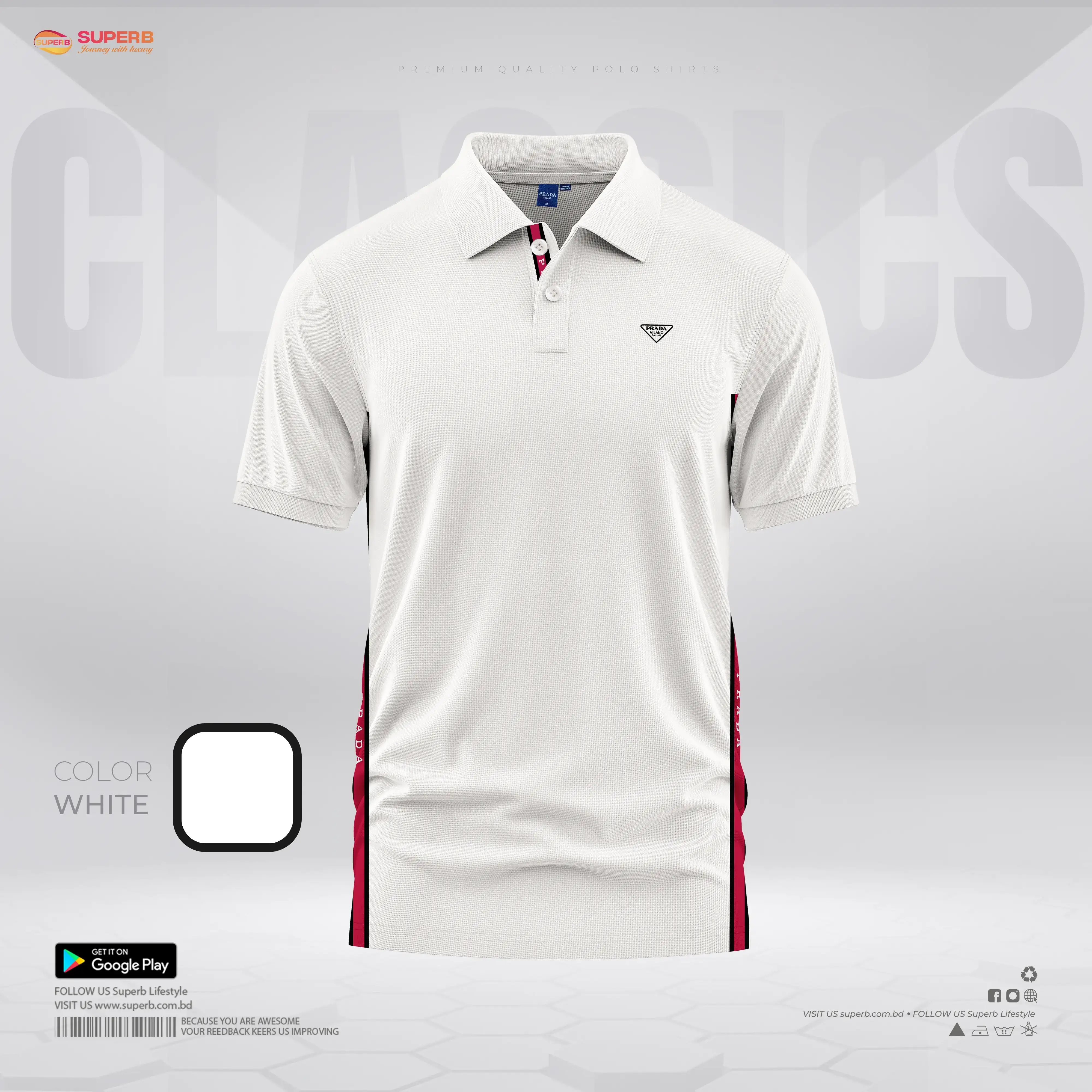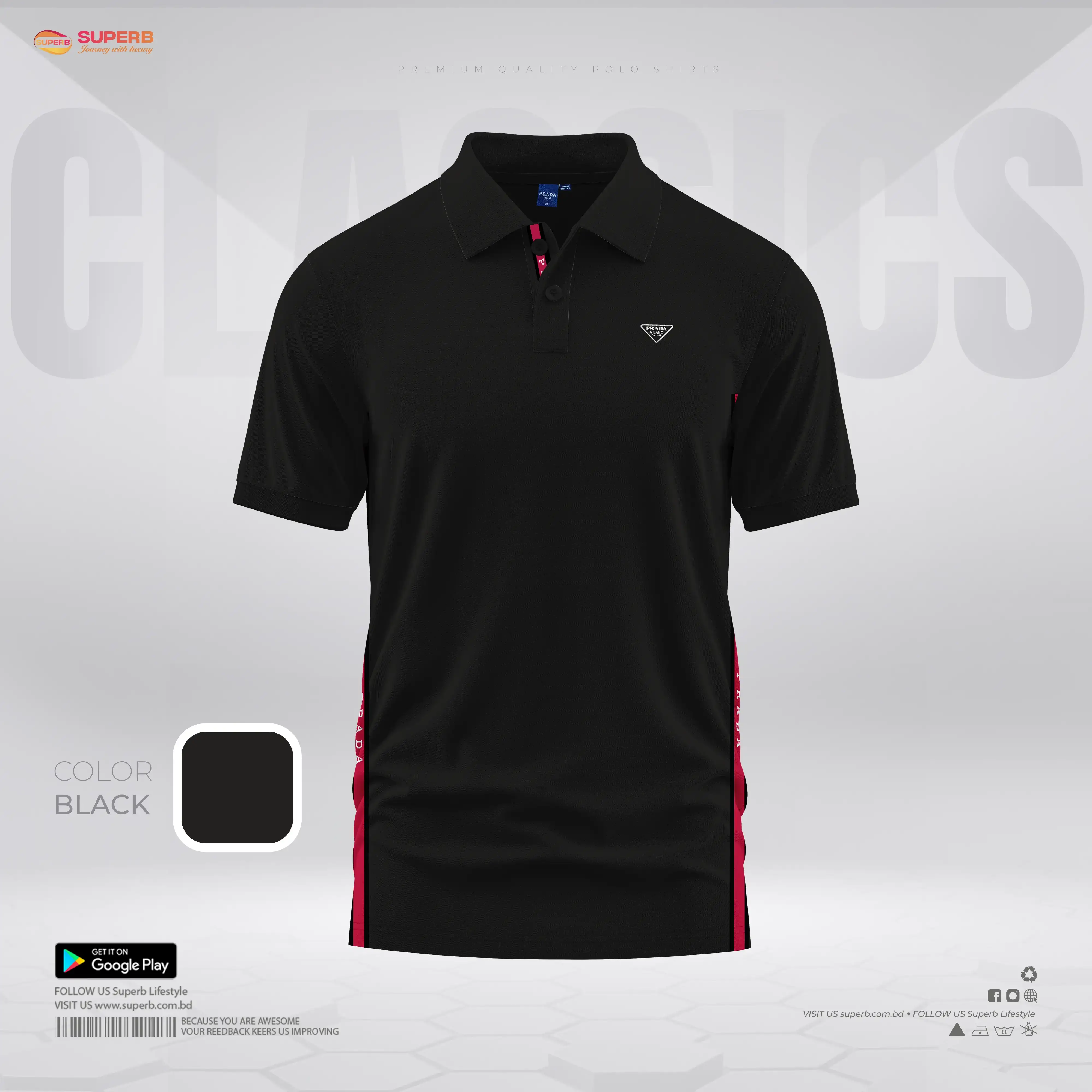 Prada Premium Polo Shirt with Side Stripe Detail || Superb