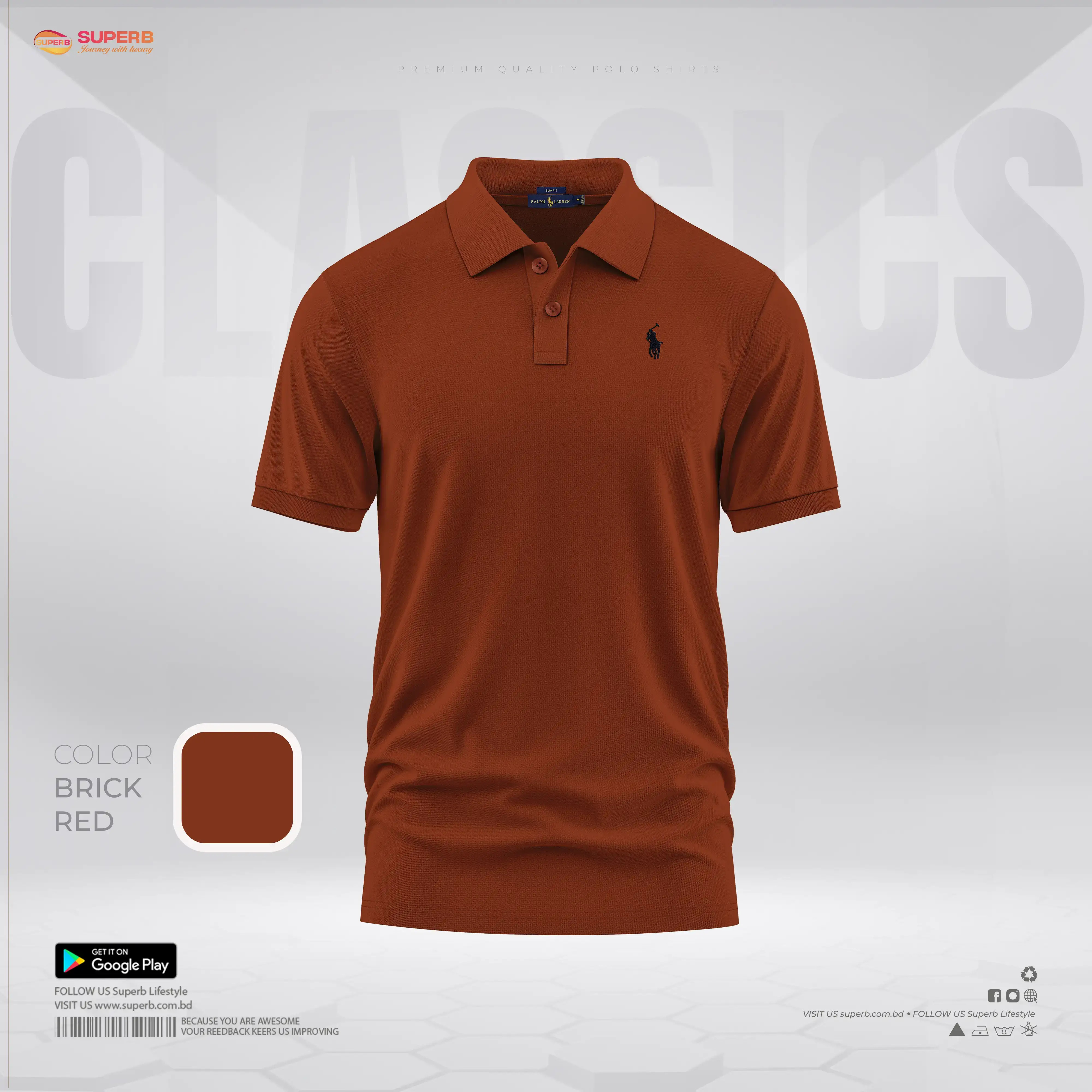 Premium quality short-sleeved polo shirt from Ralph Lauren featuring the iconic Polo Player logo. Available Color- Black, White , Green and Brick Red.